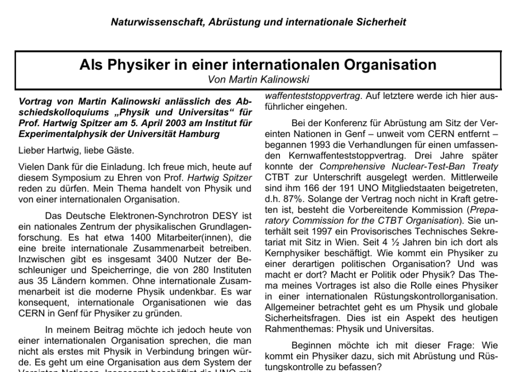 In 2003, I wrote an article in German reflecting on my first five years as a physicist working with an international organization in Vienna: the CTBTO. Its full name is the Provisional Technical Secretariat of the Preparatory Commission for the Comprehensive Nuclear-Test-Ban Treaty Organization (CTBTO).